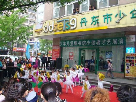 为给孩子们的节日增添欢乐气氛,我馆组织了一台庆“六一”小读者才艺展演,共演出声乐、戏曲、舞蹈、曲艺等12个精彩纷呈的小节目,吸引2000多名少儿及家长观众驻足观看,并广受好评。 5月30日下午,我馆门前彩旗翻飞,人头攒动。来自市内部分幼儿园、小学和各类培训团体的共100多名小演员,个个精神抖擞,尽展风采。舞蹈《快乐天使》《拉丁牛仔集体舞》、现代京剧《沙家浜总有一天会解放》《迎来春色换人间》、女声独唱《天路》以及快板表演、男声二重唱等精彩节目引来观众阵阵掌声。这次才艺展演在为儿童节日助兴的同时,也给孩子们提供了一个充分展示自我的平台。 此外,我馆还积极同肯德基六纬路餐厅取得联系,由他们派出吉祥物奇奇进行表演,还提供了小演员奖品100余份,并在现场为小演员免费拍照留念,这一举措,不但扩大了活动的规模影响,也走出了一条组织读者活动谋求商家赞助的新路,可谓一举多得。