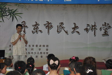 为使“文化惠民”活动落到实处,进一步根植于百姓心中,由丹东市精神文明办发起,市委讲师团主办,丹东市少年儿童图书馆、素问学堂承办的“丹东市民大讲堂”公益活动于7月22日正式启动。活动得到社会各界人士热情响应,丹东市文明办副主任赵爱力,关工委副主任谢欣田,丹东市委讲师团团长林奇涛出席了启动仪式。活动吸引了我市部分学校769名学生及家长积极参与,丹东电视台《人间真情》栏目就此次活动进行了跟踪报道。 为期一周的市民讲堂,是由文化志愿者朱纪元老师主讲,他以“治未病健康工程”为主线与大家交流中医养生科学。朱纪元老师针对到场听众的不同年龄阶段,由浅入深的阐述中医学“治未病”理论。为了让大家更能容易理解,通过国医图解视频播放、现场互动等方式答疑解惑。不仅极大提高了同学们了解国医文化的兴趣,还让与会的家长们增长了知识。历时一周的讲座结束后,很多家长和学生都感受颇多;有的家长说:中医养生不仅是一种医学、一种智慧、一种生活方式,更是一门博大精深的科学。让孩子们从小就了解中华五千年的国医文化,懂得采取养生科学强壮身体,进而爱惜生命,这样的活动开展得非常有意义。 此次丹东市民大讲堂活动是我市“文化惠民”活动重点工作之一,为此,丹东市少年儿童图书馆将此次活动纳入了该馆暑假国学活动之中,活动的开展大大提升了我市青少年及家长朋友们对中医治未病理念的了解,使广大市民朋友学会了自我保健,树立了健康的生活理念。
