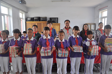 6月11日上午,丹东市少儿图书馆文化志愿者与丹东市关心下一代未成年人思想道德教育学会会员一起来到宽甸城厢小学,为该校师生送文化献爱心。活动中,丹东市少儿图书馆为城厢小学图书流动站送书送刊1000册,为学生订购新课标小学生课外阅读图书60册、教师推荐图书10册。并借助丹东地区图书馆集群管理系统,将学校图书室借阅管理工作统一在市少儿图书馆图书借阅管理系统中运行,使全校300余名学生足不出校就能查询、借阅市少儿图书馆的全部文献资源。同时,该馆还在城厢小学招募了3名《小蘑菇》报小记者,并现场颁发了小记者证及采访用具。此外,丹东市关心下一代未成年人思想道德教育学会理事、辽东学院中文系教授、文化学者杨荣祥老师还对城厢小学参加全市少年儿童“梦想•起航”征文大赛作品进行了指导点评,杨教授深入浅出的指导,受到全样师生的好评。丹东日报记者对此项活动进行了跟踪采访。