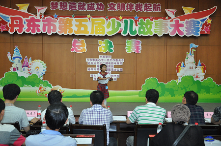 8月16日,丹东市抗美援朝纪念馆的礼堂里传来了阵阵笑声和喝彩声,由丹东市关心下一代工作委员会、丹东市精神文明建设办公室、丹东市文化广播电影电视局、丹东市教育局联合主办,丹东市少年儿童图书馆、丹东市曲艺家协会承办,以“梦想造就成功 文明伴我起航”为主题的丹东市第五届少儿故事大赛总决赛正在进行中。经过东港市、凤城市、宽甸县、元宝区、振兴区、振安区6个分赛区的初赛、复赛,选拔出210名获奖小选手,其中138位小选手参加了当天的总决赛,角逐特等奖和一、二等奖。孩子们凭借生动的语言和丰富的表情深深吸引、打动了现场观众和评委,充分展示了我市少年儿童积极向上、朝气蓬勃、热爱家乡、追求梦想的精神面貌。