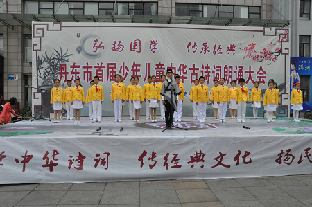 10月18日上午,由丹东市少儿图书馆、丹东市民间文艺家协会联合主办以“弘扬国学 传承经典”为主题的丹东市首届少年儿童中华古诗词朗诵大会在市银杏广场隆重举行。作为该馆2014年度“文化传承 孝道先行”系列活动之一,本次活动吸引了来自全市30多所学校、幼儿园的150多名少儿古诗词爱好者欢聚一堂,他们用幼稚纯朴的童声倾情朗诵了百余首经典的中华古诗词,共同上演了一台展示中华民族优秀传统文化的盛宴。
