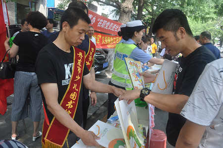 一是于6月30日组织全体党员来到头道桥一街社区,开展了“在职党员进社区”活动。活动中,向社区居民发放了《丹东市少年儿童图书馆简介》、《小蘑菇》报等宣传资料和少儿期刊200册,并解答了社区居民关于开馆时间、借阅规则、书证办理等业务咨询,大受社区居民欢迎。