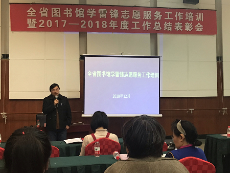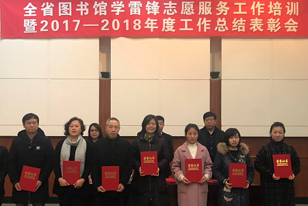 辽宁省文明办志愿服务工作处处长李罡、辽宁省图书馆副馆长杜希林、副馆长姚杰等相关领导出席会议。此次会议表彰了2017-2018年度学雷锋志愿服务“四个优秀”,优秀分队14家、优秀组织者17人、优秀志愿服务项目14个、优秀文化志愿者17人;此外,还对全省22家图书馆及社会公益机构授予第二批全省图书馆学雷锋志愿服务分队牌匾。