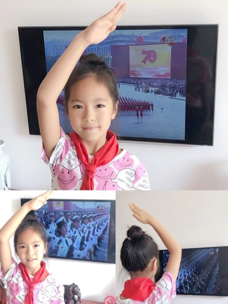 此项活动面向低幼读者开展,旨在通过观看阅兵式、与阅兵画面合影的方式,加深低幼读者对国庆节的深刻认识,加强对他们的爱国主义教育。活动得到了小读者和家长的积极响应,在征集的照片中,小读者均以阅兵画面为背景,选取不同的姿势拍照,有的模仿士兵行走,有的手持五星红旗,有的行军礼和少先队礼……尽管孩子们的姿势不算标准,但他们用真诚的笑容和纯真的话语,在向祖国母亲深情告白。