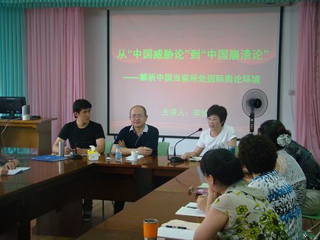 7月25日,我馆利用学习日的有利时机,邀请市文化广电局副局长李悦昌,为全馆职工做了题为《从“中国威胁论”到“中国崩溃论”——解析中国当前所处国际舆论环境》的时事政治辅导讲座。 李局长的辅导讲座,首先就我国自然禀赋、经济实力、经济增长速度、军事实力、国际地位、文化影响力等因素,简要介绍了中国目前的综合国力,并指出,随着我国综合国力的增强,我国所处的国际舆论环境也有了新的变化,分别出现了“中国威胁论”、“中国崩溃论”和“中国贡献论”。随后,他分别讲解了“中国威胁论”、“中国崩溃论”的来由、观点、依据及危害,并从现实和理论方面予以驳斥。最后,李局长针对性地提出了我们的应对办法,即一要平心静气,不为所动,埋头自己的现代化建设;二要正视困难,解决问题;三要韬光养晦,有所作为,根据国家利益和自身实力,发挥国际影响力;四要争取主动,加强宣传,宣传“中国贡献论”,把握国际话语主动权。李局长的辅导报告由浅入深,有理有据,大家听得认真,收获很大。 会后,职工们纷纷写出心得体会,副馆长李凤平写道:作为少图工作者,不能满足于业务知识的学习,还应积极拓宽自己的知识面,提高学习兴趣,增强学习主动性,努力提升自身的综合能力,用优异的学习成绩回报组织多年来的关注与培养;年轻党员李玉焓写道:作为一名图书馆员更应加强自身的修养,在日常工作中把服务做得更细致一些,要勇于学习新知识,善于把学习和思考相结合,发现自己,总结自己,提高自己。 通过此次学习,使得全馆职工对时事政治有了更深刻的理解,也激发了大家对国际时事学习的浓厚兴趣。我馆将在今后继续加强职工学习培训力度,邀请专家学者进行讲座辅导,使全馆职工在不断学习中进一步提高自身综合能力,为少儿图书馆事业的蓬勃发展积蓄坚实的力量。