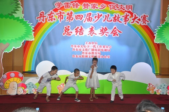 以“学雷锋 赞家乡 促文明”为主题的丹东市第四届少儿故事大赛是由丹东市关心下一代工作委员会、丹东市文化广播电影电视局、丹东市教育局、丹东市精神文明建设办公室联合主办,市少儿图书馆、市曲艺家协会承办。大赛自今年4月开始,历经5个月时间,经过故事创作征集、故事表演报名、学校初赛、各区复赛和丹东市总决赛等环节,圆满完成了各阶段工作。在各主办部门、承办单位的大力支持下,各县(市)区参赛部门的积极配合下和各位老师、家长、学生的热情参与下,共有158人获奖。其中少年组特等奖1名,一等奖 18 名、二等奖28名、三等奖55名;低幼组一等奖 19名、二等奖 17名、三等奖14名;另评出最佳风采奖2名,最佳表情奖2名,最佳人气奖2名;原创故事一等奖5个,二等奖10个,三等奖12个;优秀组织者奖40人;优秀组织单位奖12个。
