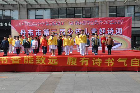 4月23日是第二十个世界读书日,丹东市少年儿童图书馆在市银杏广场举办了大型阅读推广活动,再次掀起了全民阅读的热潮。今年的阅读推广活动以“阅读的力量”为主题,包括“丹东市第二届少年儿童好诗词朗诵大会”、“丹东抗日革命活动和日寇侵略铁证遗址图片展”等内容,旨在激励广大少年儿童积极参与全民阅读,树立“多读书、读好书”的文明风尚,传承中华民族的传统文化,推进城市文明建设。 在好诗词朗诵环节中,该馆国学班、故事团的200余名小同学表演了精彩的快板书、诗朗诵等节目,引来众多市民驻足观看。让市民领略传统文化经典诵读风采的同时,也将此次阅读推广活动推向了高潮。活动现场,该馆工作人员还向读者发放了少儿馆简介、图书推荐书目、生活小常识、《小蘑菇》报等宣传资料1500余份,并开设便民办理图书证业务。