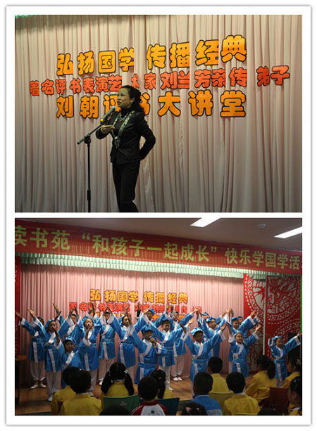 4月20日丹东市少年儿童图书馆特邀著名评书表演艺术家刘兰芳大弟子刘朝到馆,为该馆国学班的小读者及家长带来了一场题为《弘扬国学 传播经典》的文化讲座。 在近两个小时的讲座中,刘朝老师分别讲述了快板、诗朗诵、评书的表演技巧,畅谈学习民间传统艺术与国学经典的益处。随后,还为小读者表演了一段《岳飞传》,绘声绘色的表演引得全场阵阵热烈的掌声,让孩子们对民间传统艺术产生了深厚的兴趣,为其学习国学经典提供了新的形式。 刘朝老师在现场与爱好国学的小读者们进行了互动交流。针对小读者表演的《美丽中国梦》《说梦》等节目,给予了耐心细致的点评。讲座最后,刘朝老师鼓励大家平时要多关注评书艺术,亲近中华优秀传统文化,重塑对中国文化的自信。