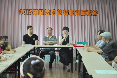 最后,丹东市少年儿童图书馆馆长李新娥就今年暑假活动的策划、组织、落实等工作做了全面性的总结,对暑假参与读者活动的优秀小读者、家长及文化志愿者们提出了表扬,并倡导家长们不要太过要求和干预孩子想看的书,就“开卷有益”与在场与家长展开交流。