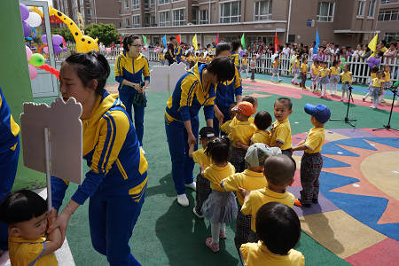 走进格林优贝安民幼儿园当天,正直该园开展“庆六一”大手拉小手活动,200余名师生以及家长们正在共同欢度“六一”儿童节的到来。活动现场,丹东市少年儿童图书馆同格林优贝安民幼儿园举行了授匾仪式,市少年儿童图书馆馆长李新娥同幼儿园园长把带来的首批少儿低幼读物发放到孩子们手中,孩子们看到这么多精美的图书迫不及待的翻阅起来。仪式结束后,幼儿园的小朋友和老师们一同表演了集体韵律操、歌舞表演等节目。