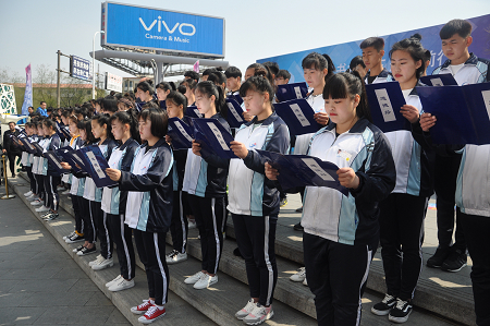 作为全民读书节开幕的亮点,该馆于当天还举办了第四届少年儿童中华古诗词朗诵大赛,来自各幼儿园、中小学校以及该馆国学班的380名学生为现场观众带来了《文明韵律操》《中华国学传万代》等国学表演。孩子们充满朝气的朗朗诵读声,将活动气氛推向了高潮。观众的掌声、喝彩声此起彼伏,热烈的氛围笼罩了整个万达广场。