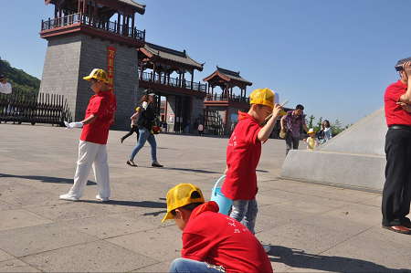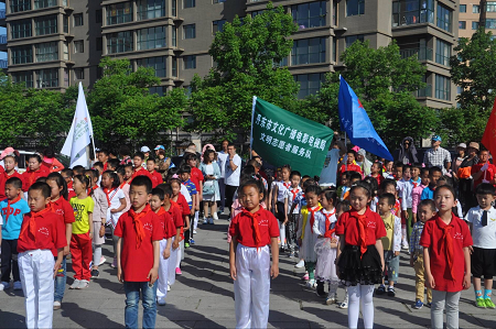 随后,100多位小读者在老师和家长的带领下,分乘50多辆系有“手拉手庆六一文明行”彩色飘带的私家车浩浩荡荡开往万里长城的最东端——虎山明长城。在长城脚下,小读者们提着塑料桶,握着卫生筷子,开始了捡拾垃圾活动。活动中,该馆还组织小读者进行了“创建文明城市”知识抢答。他们的文明行动感动了虎山长城的国内外游客,挑指称赞的同时也纷纷表示:创建文明城从娃娃抓起,非常有意义。