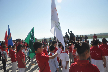 清晨,阳光火红,江水碧绿,在抗美援朝过江浮桥英雄广场,抗美援朝老战士刘奶奶向小读者们讲述了感人至深的英雄事迹,并希望大家不忘历史、努力学习!小读者们向刘奶奶和英雄雕像敬献了红领巾,并齐声朗诵《敬礼,少先队员》。鲜艳的红领巾迎风飘舞,激情的诗词朗诵声在英雄广场上空久久回荡!